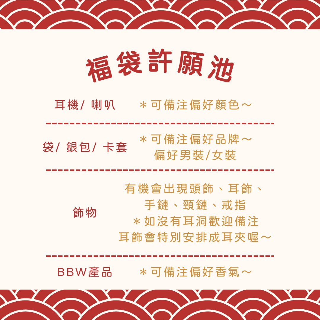 今次一共為大家設計咗5款福袋🧧分別係↓